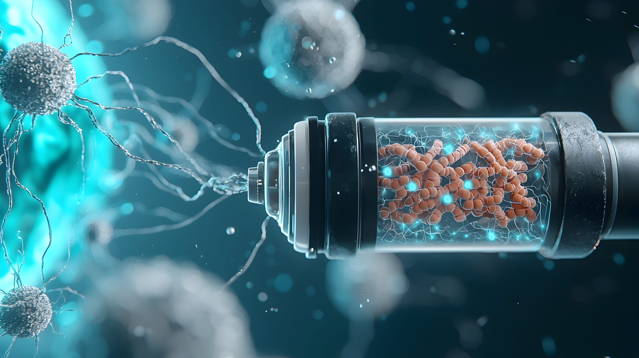 Conceptual metaphor depicting a battery like structure representing the energy production process within mitochondria the powerhouse organelles of biological cells The image showcases a glowing